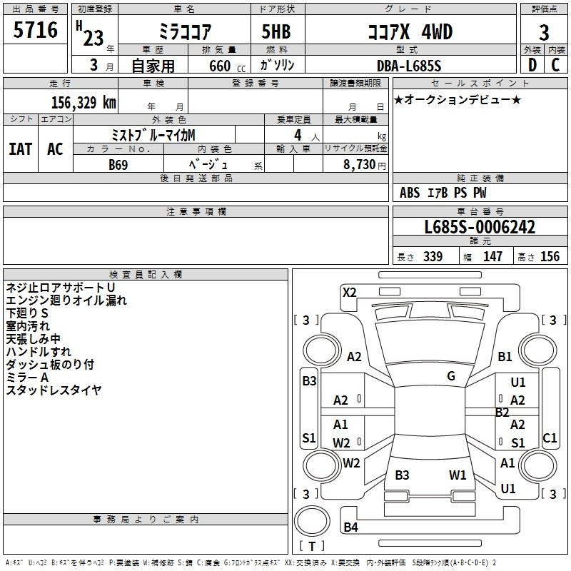 Daihatsu Mira, 2011 года - Лот№5716 ★3