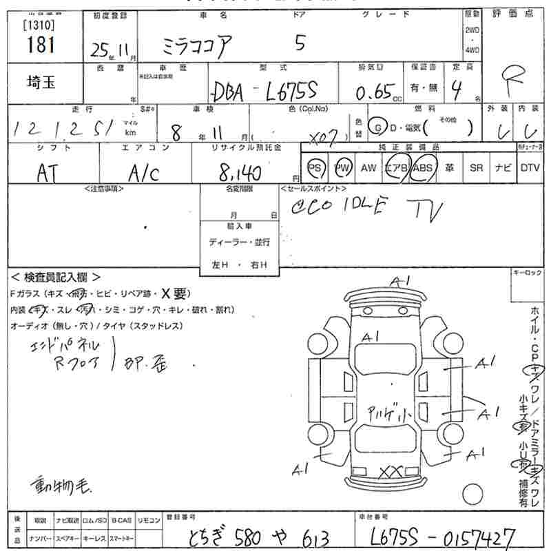 Daihatsu Mira, 2013 года - Лот№181 ★R