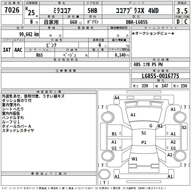 Daihatsu Mira, 2013 года - Лот№7026 ★3.5