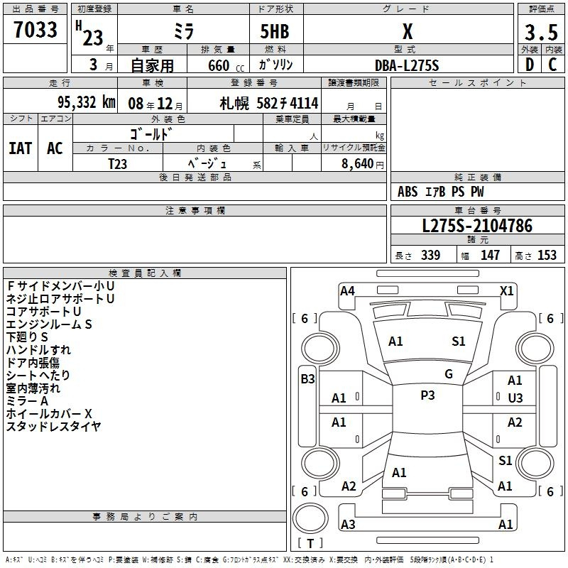 Daihatsu Mira, 2011 года - Лот№7033 ★3.5