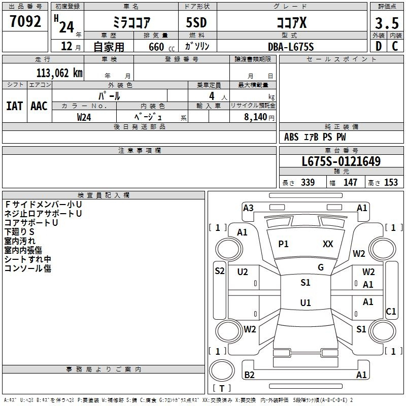 Daihatsu Mira, 2012 года - Лот№7092 ★3.5