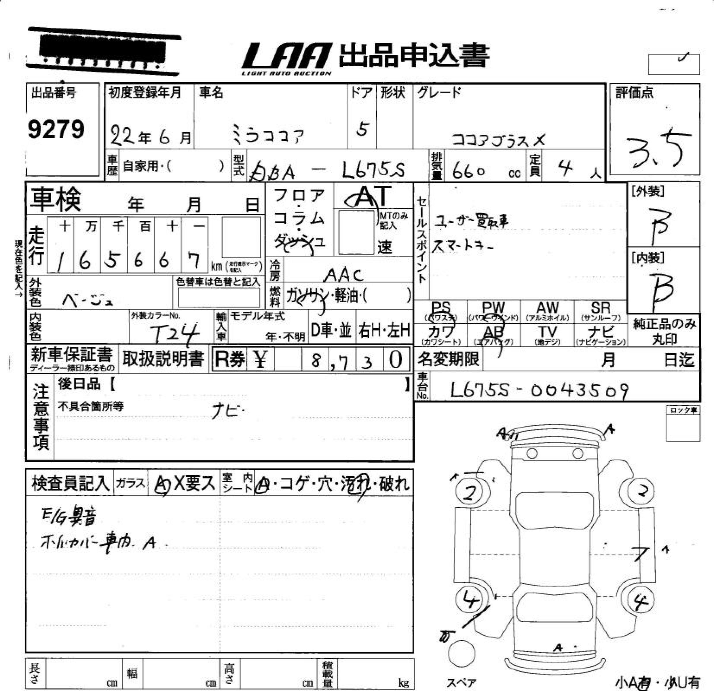 Daihatsu Mira, 2010 года - Лот№9279 ★3.5