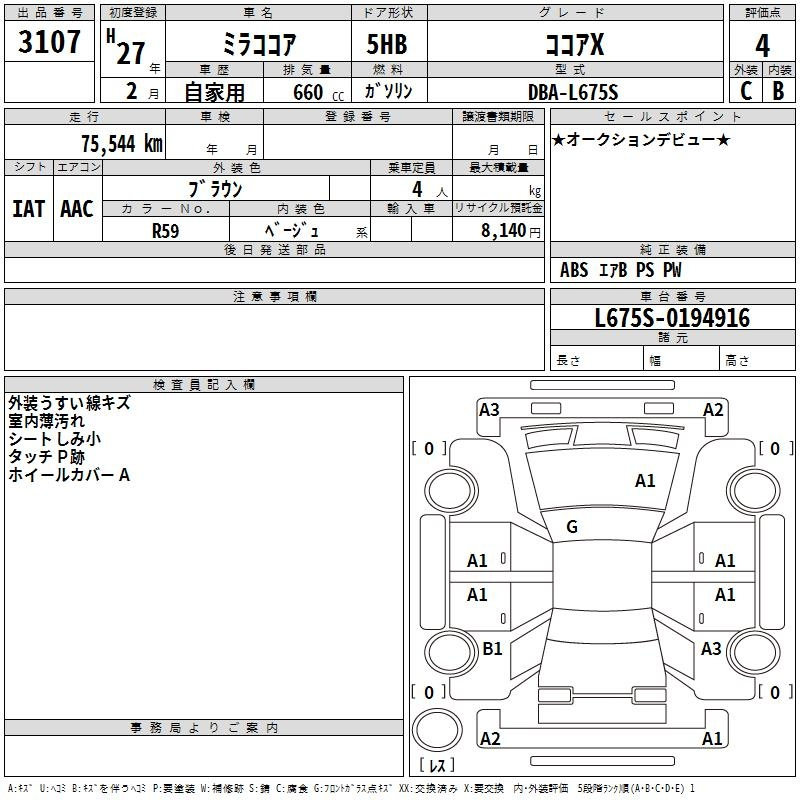 Daihatsu Mira, 2015 года - Лот№3107 ★4