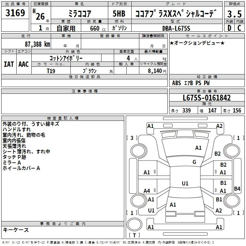 Daihatsu Mira, 2014 года - Лот№3169 ★3.5
