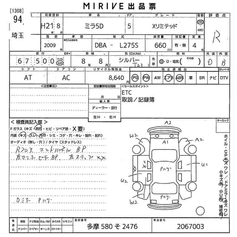 Daihatsu Mira, 2009 года - Лот№94 ★R