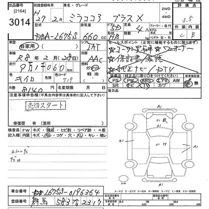 Daihatsu Mira, 2015 года - Лот№3014 ★3.5