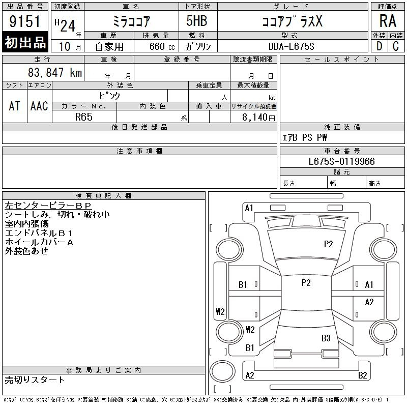 Daihatsu Mira, 2012 года - Лот№9151 ★RA
