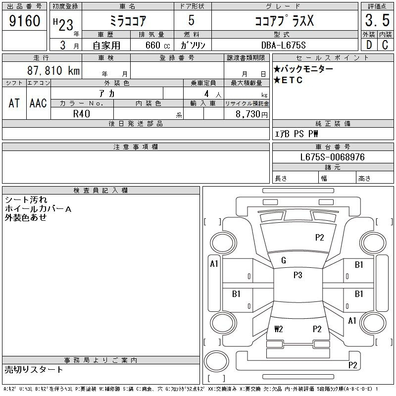 Daihatsu Mira, 2011 года - Лот№9160 ★3.5