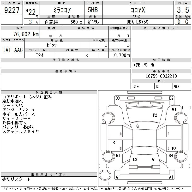 Daihatsu Mira, 2010 года - Лот№9227 ★3.5