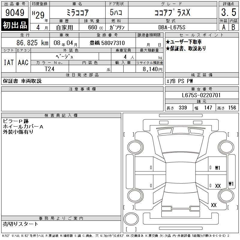 Daihatsu Mira, 2017 года - Лот№9049 ★3.5