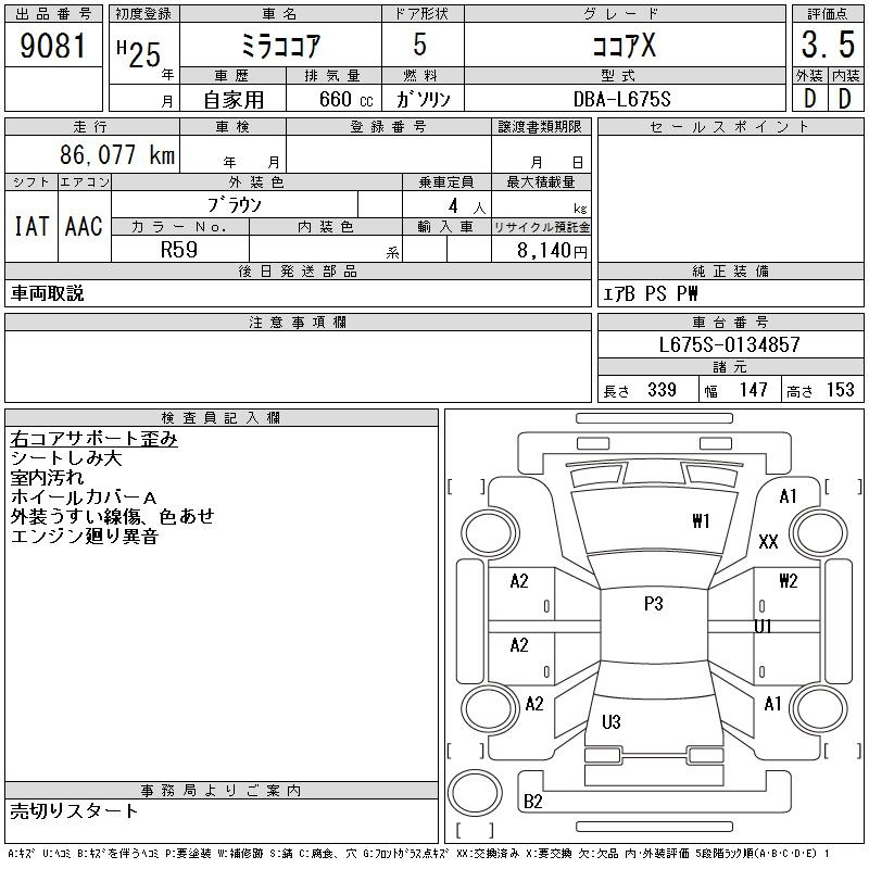 Daihatsu Mira, 2013 года - Лот№9081 ★3.5