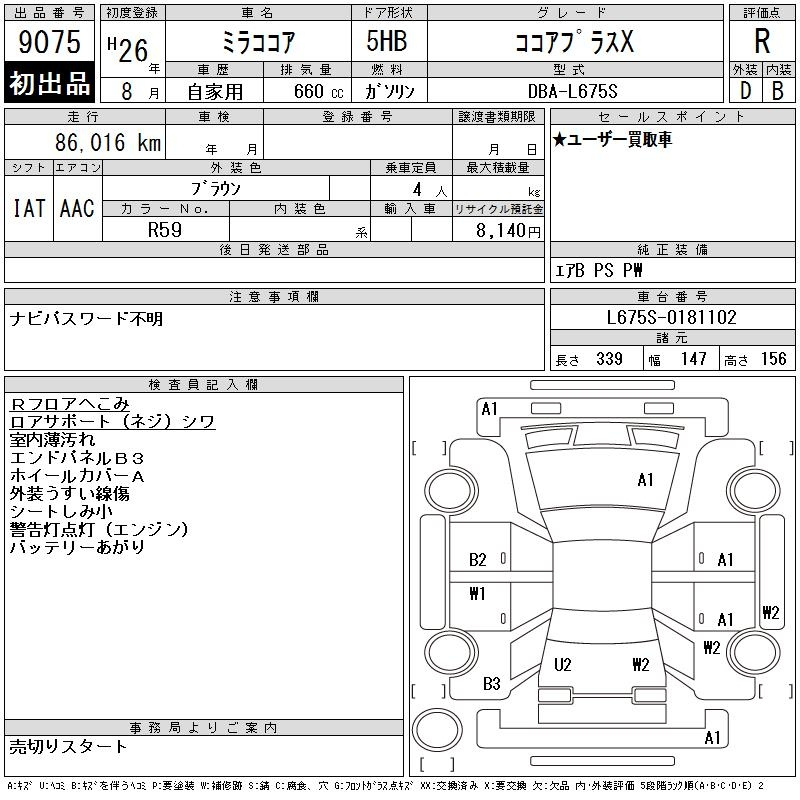 Daihatsu Mira, 2014 года - Лот№9075 ★R