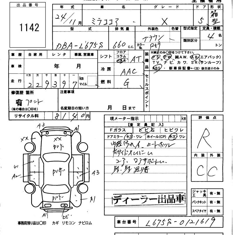 Daihatsu Mira, 2012 года - Лот№1142 ★R