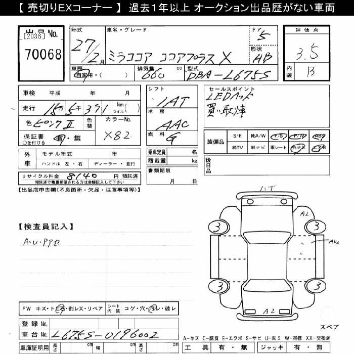 Daihatsu Mira, 2015 года - Лот№70068 ★3.5