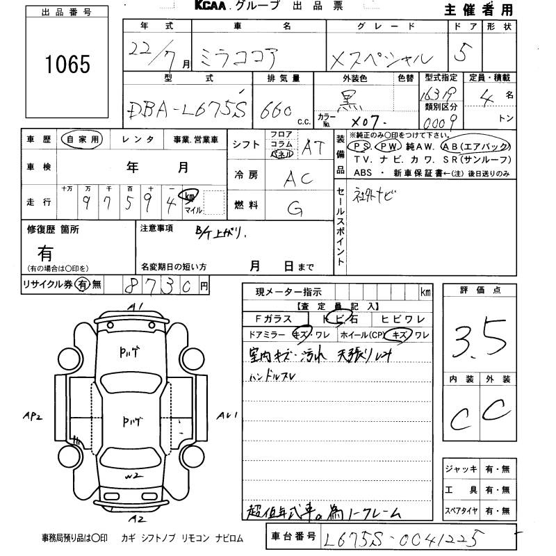 Daihatsu Mira, 2010 года - Лот№1065 ★3.5