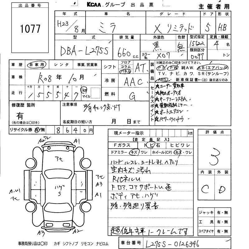 Daihatsu Mira, 2011 года - Лот№1077 ★3