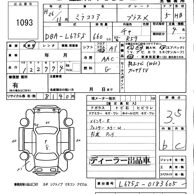 Daihatsu Mira, 2014 года - Лот№1093 ★3.5