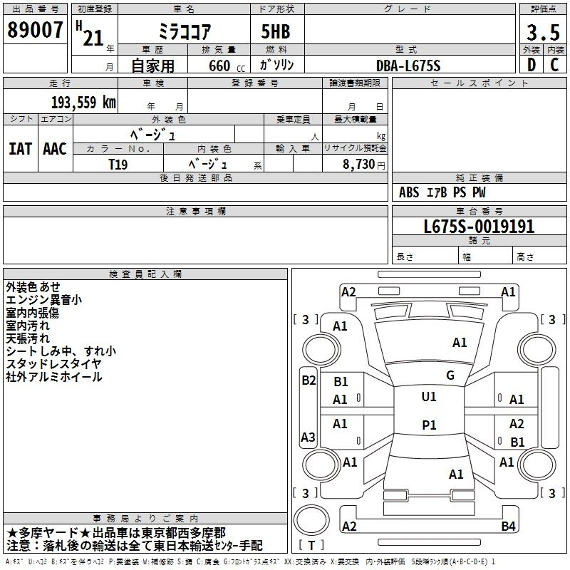 Daihatsu Mira, 2009 года - Лот№89007 ★3.5