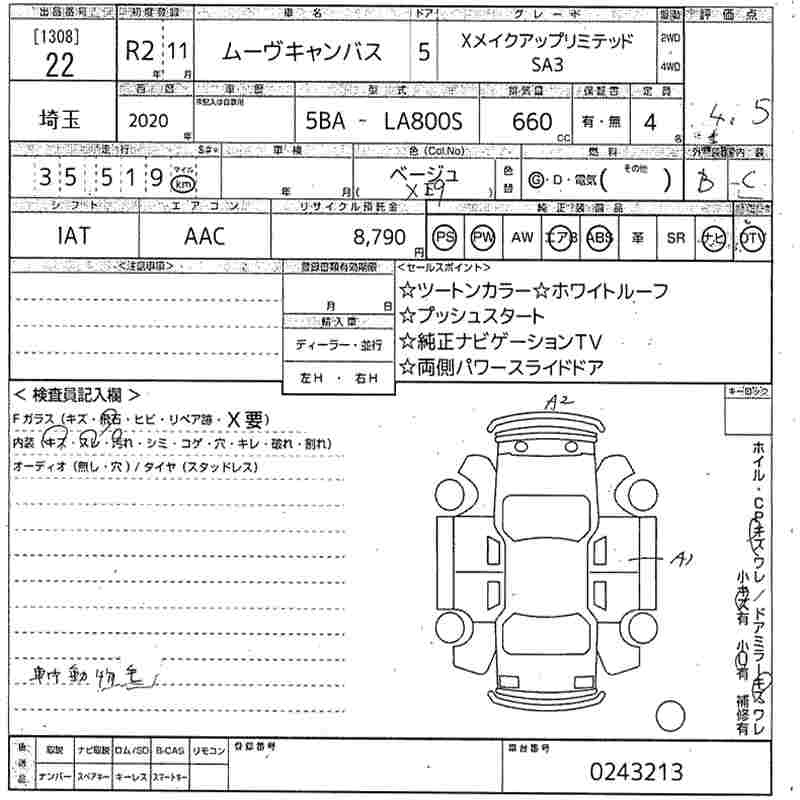 Daihatsu Move canbus, 2020 года - Лот№22 ★4.5