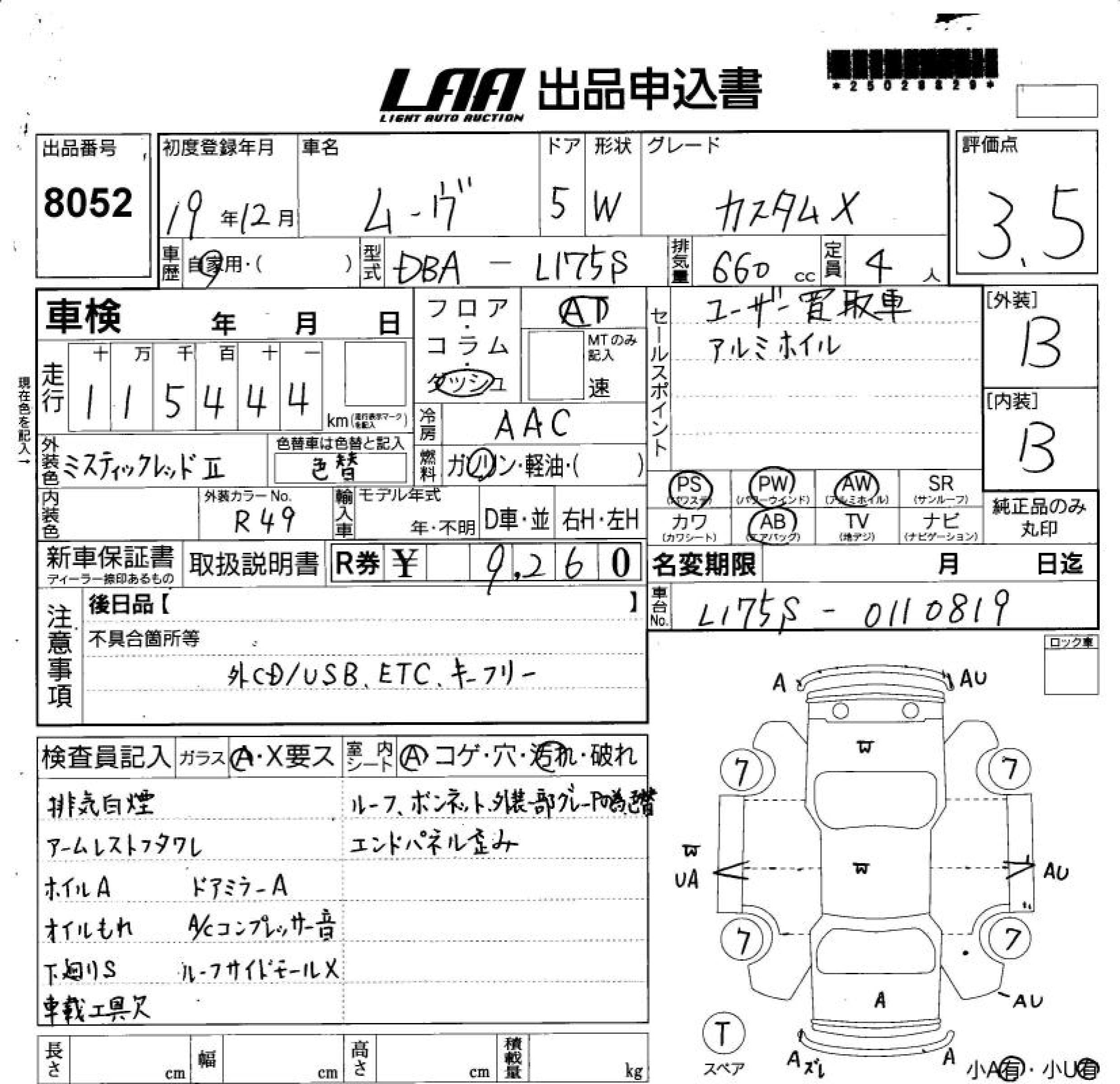 Daihatsu Move, 2007 года - Лот№8052 ★3.5