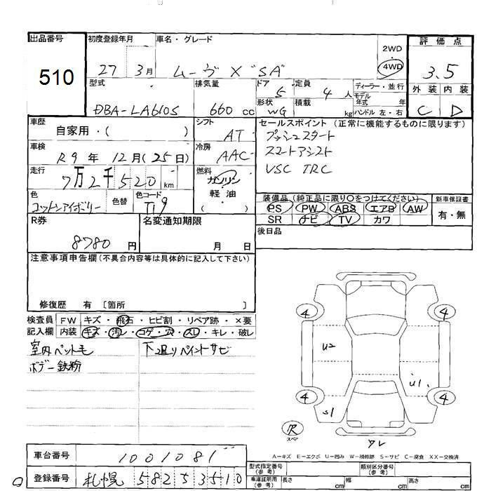 Daihatsu Move, 2015 года - Лот№510 ★3.5
