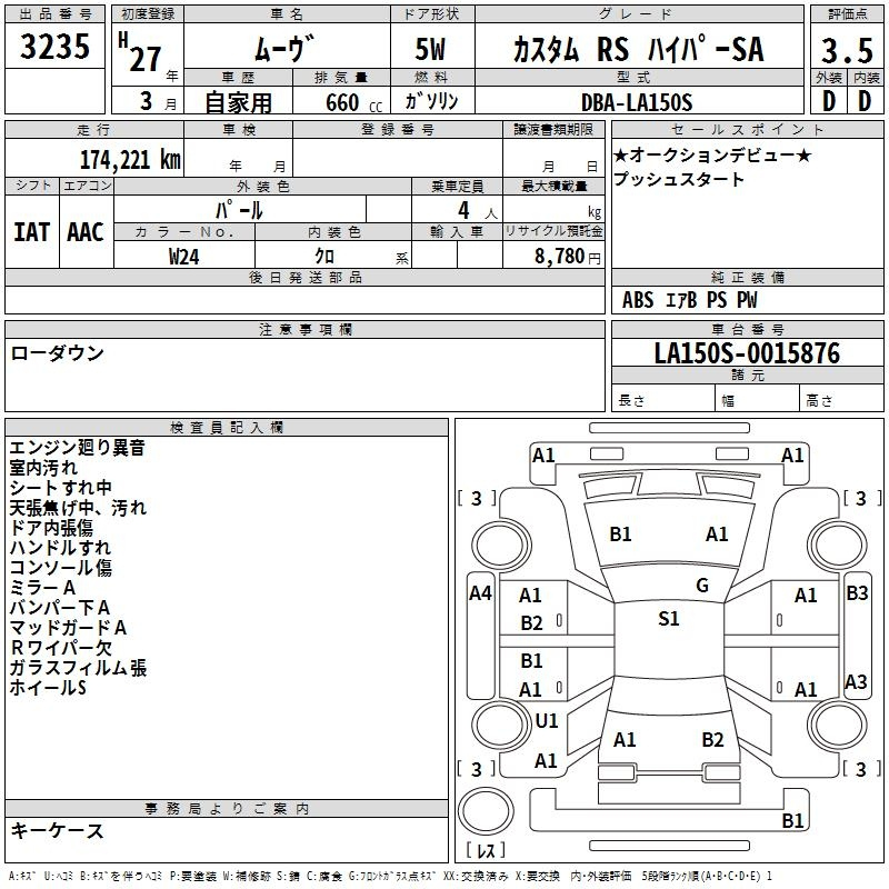 Daihatsu Move, 2015 года - Лот№3235 ★3.5