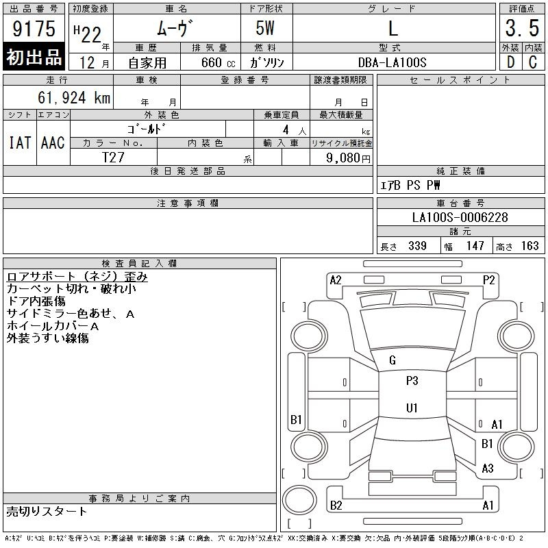 Daihatsu Move, 2010 года - Лот№9175 ★3.5