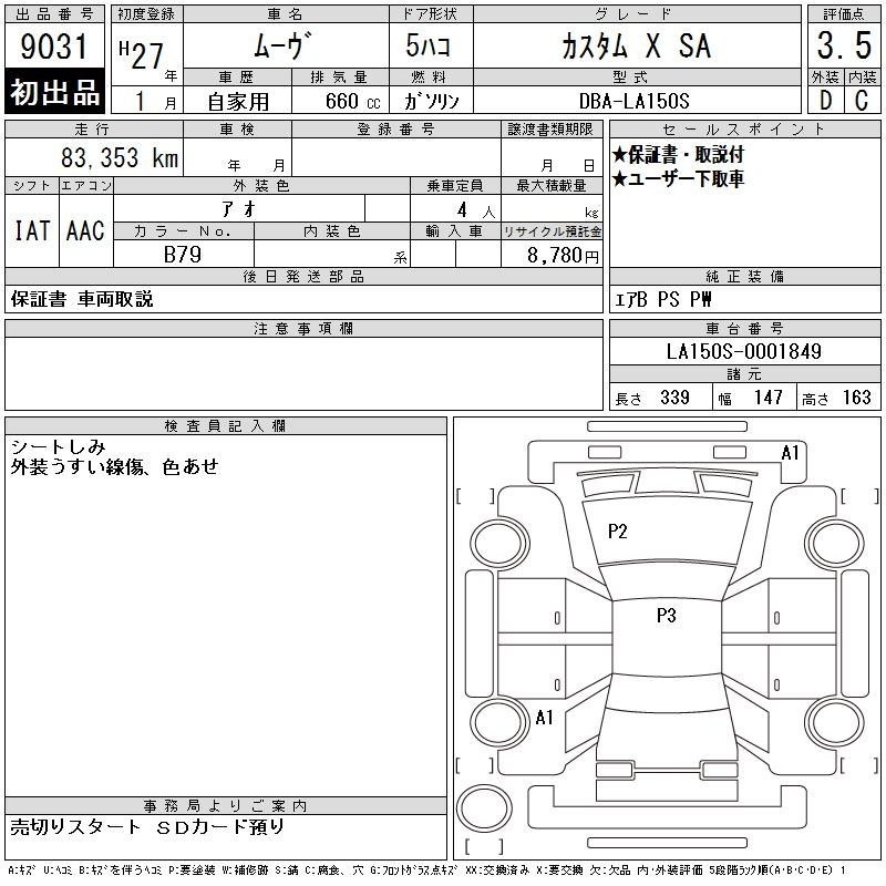 Daihatsu Move, 2015 года - Лот№9031 ★3.5
