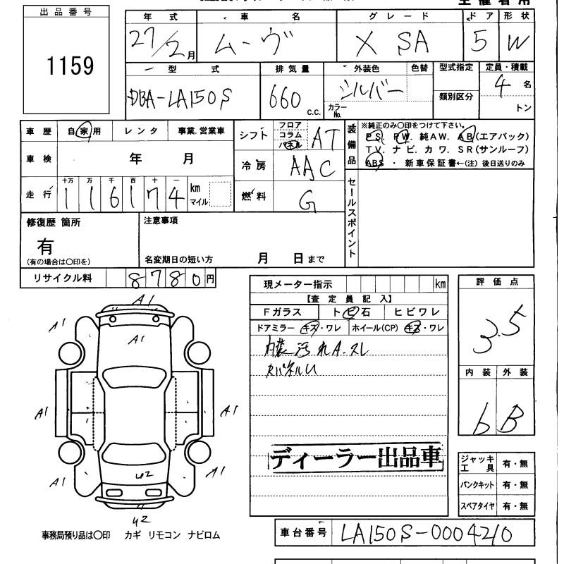 Daihatsu Move, 2015 года - Лот№1159 ★3.5