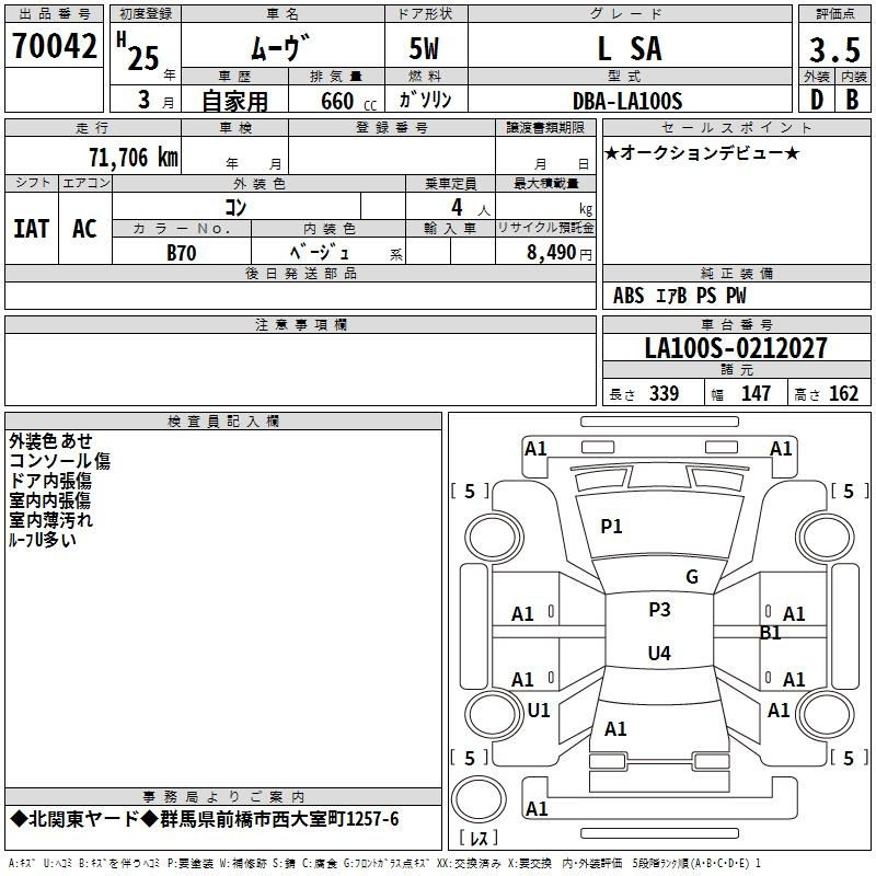 Daihatsu Move, 2013 года - Лот№70042 ★3.5