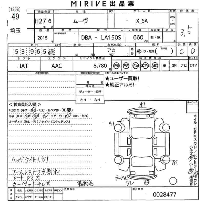Daihatsu Move, 2015 года - Лот№49 ★3.5