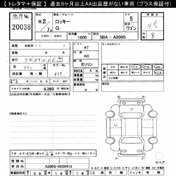 Daihatsu Rocky, 2020 года - Лот№20038 ★4.5