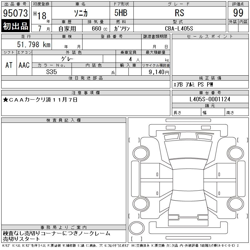 Daihatsu Sonica, 2006 года - Лот№95073 ★99