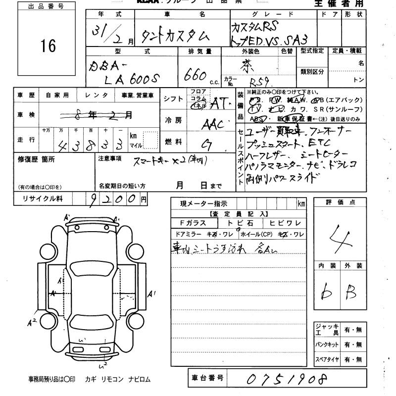 Daihatsu Tanto, 2019 года - Лот№16 ★4