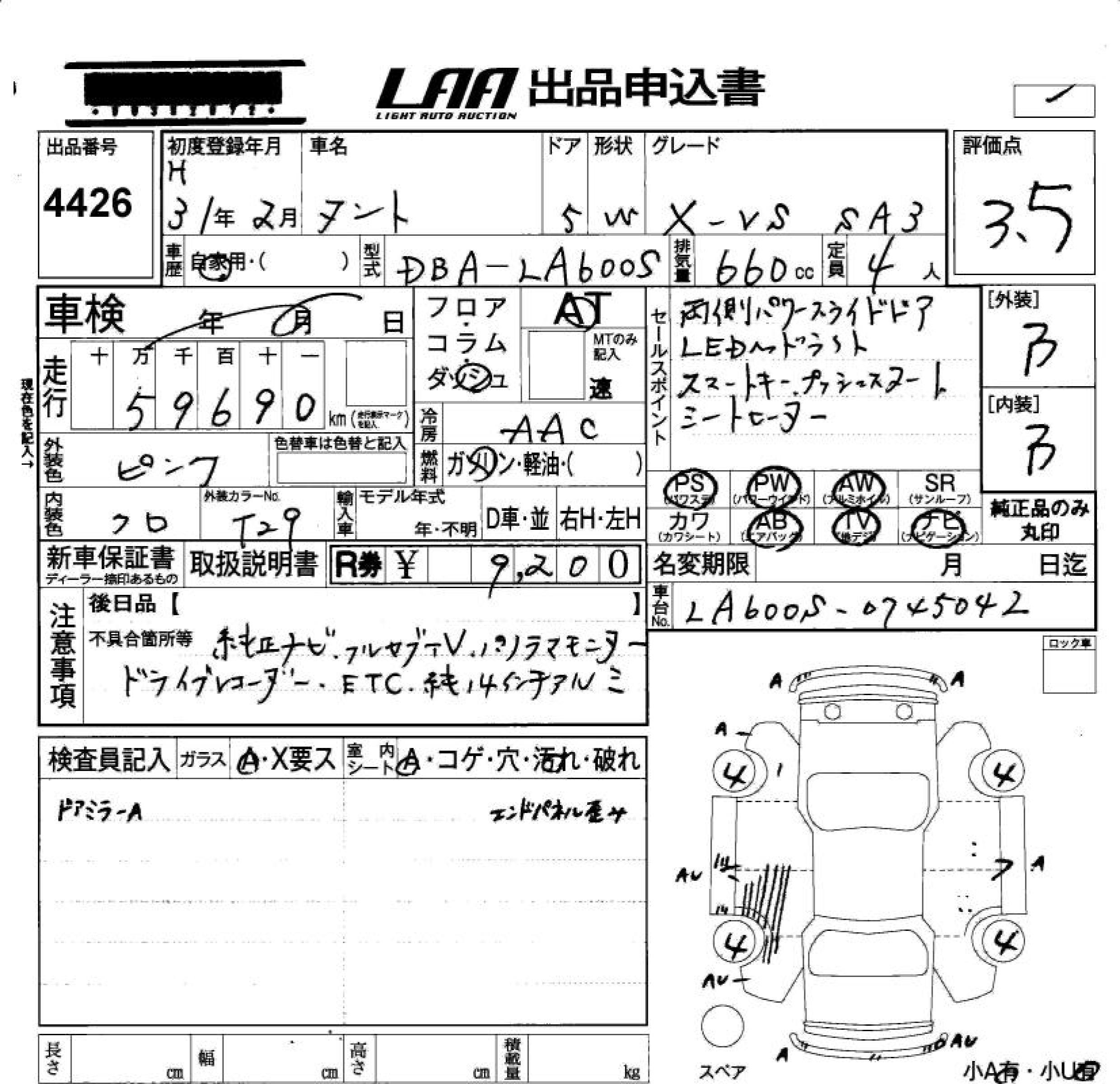 Daihatsu Tanto, 2019 года - Лот№4426 ★3.5