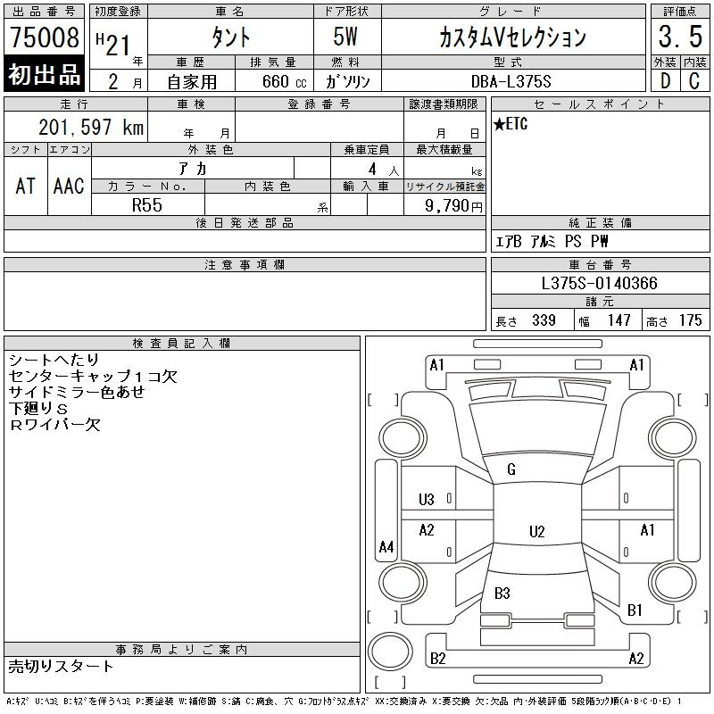 Daihatsu Tanto, 2009 года - Лот№75008 ★3.5