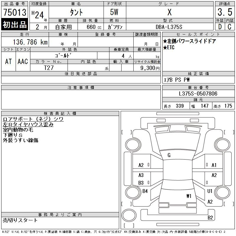 Daihatsu Tanto, 2012 года - Лот№75013 ★3.5