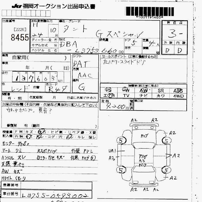 Daihatsu Tanto, 2012 года - Лот№8455 ★3