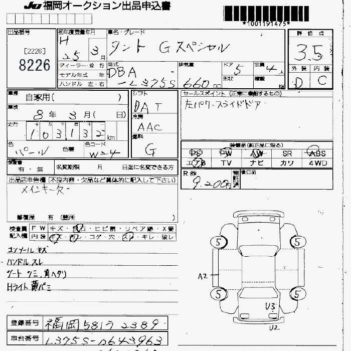 Daihatsu Tanto, 2013 года - Лот№8226 ★3.5