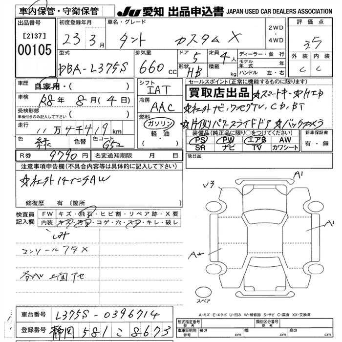 Daihatsu Tanto, 2011 года - Лот№105 ★3.5