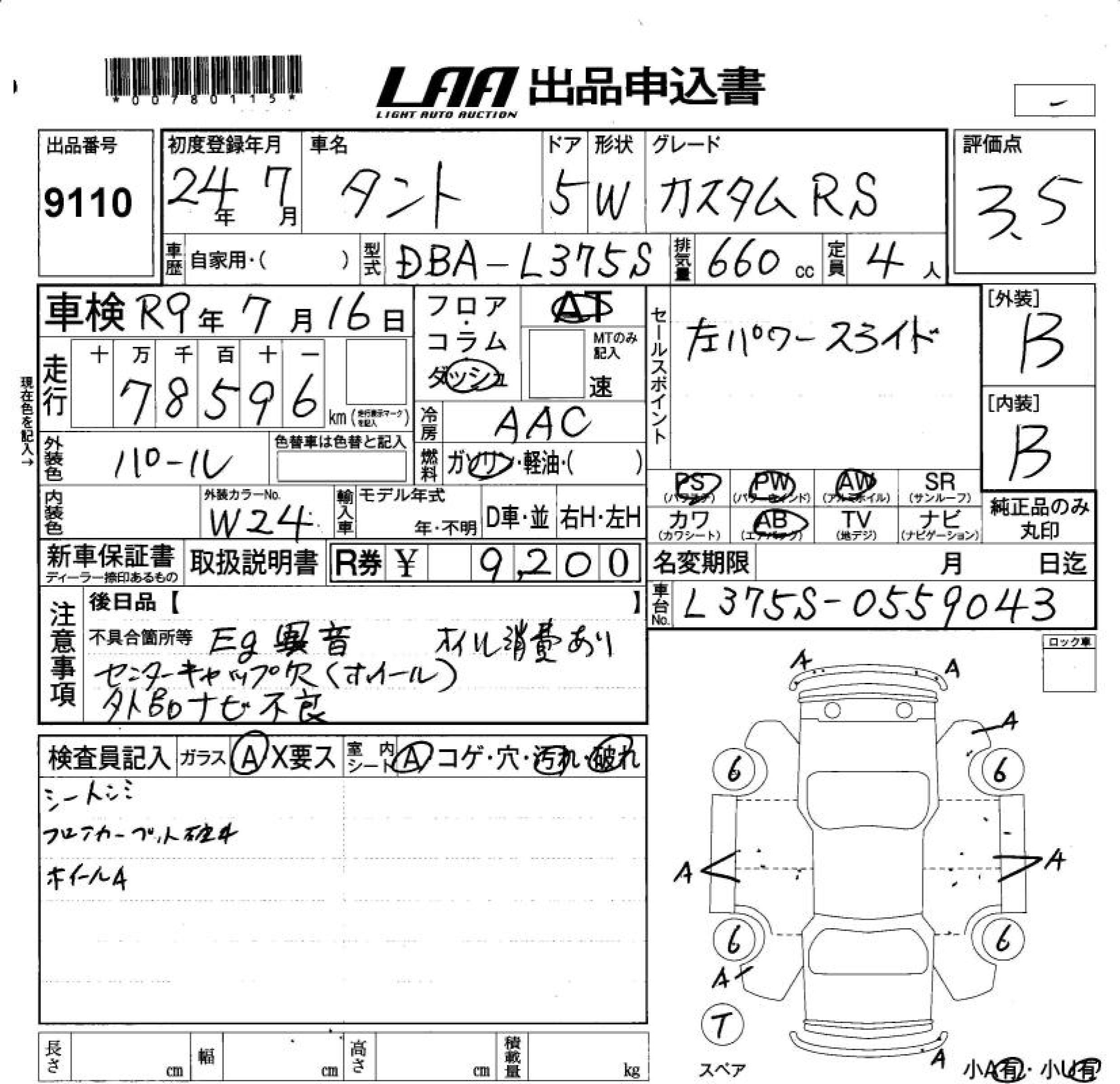 Daihatsu Tanto, 2012 года - Лот№9110 ★3.5