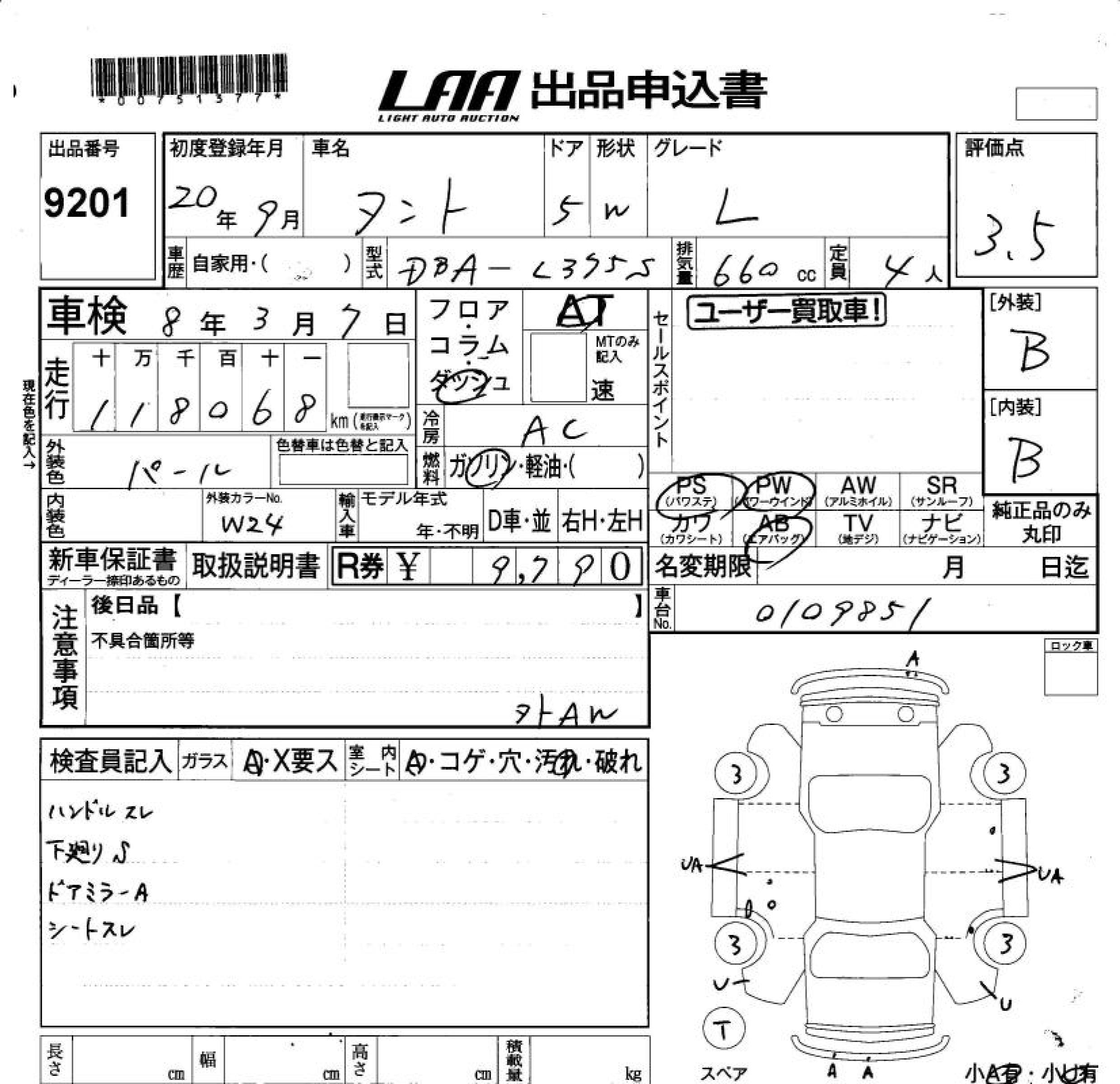 Daihatsu Tanto, 2008 года - Лот№9201 ★3.5