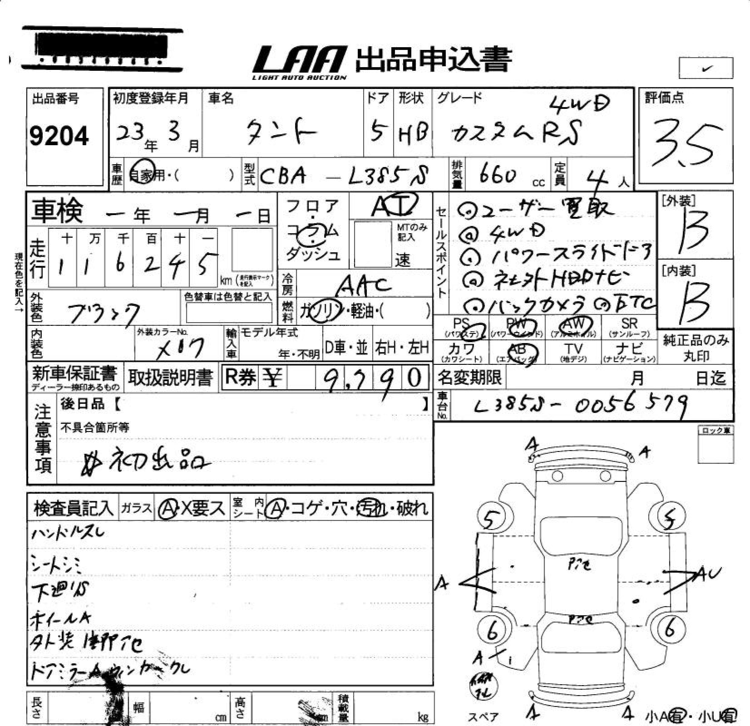 Daihatsu Tanto, 2011 года - Лот№9204 ★3.5