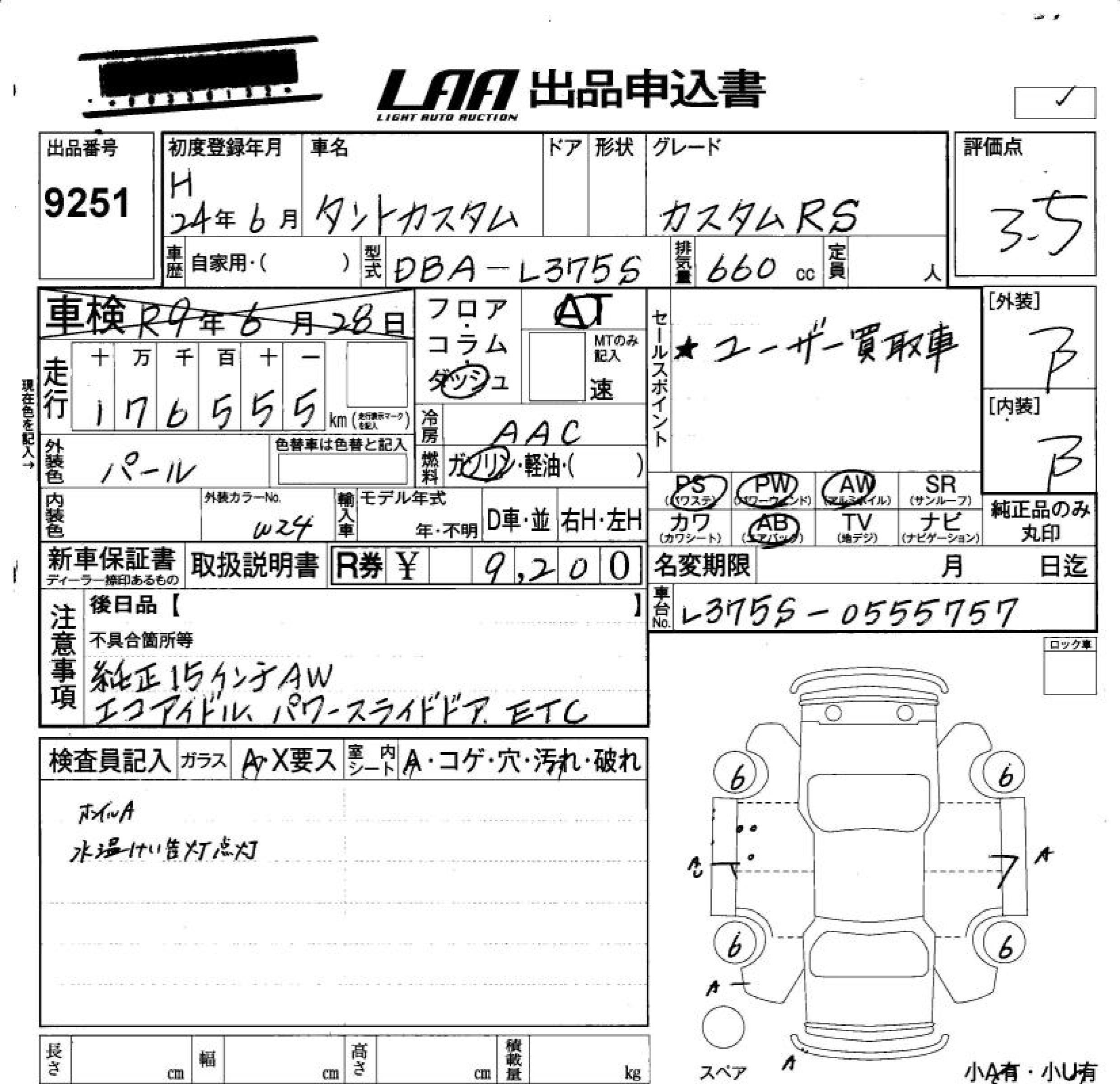 Daihatsu Tanto, 2012 года - Лот№9251 ★3.5