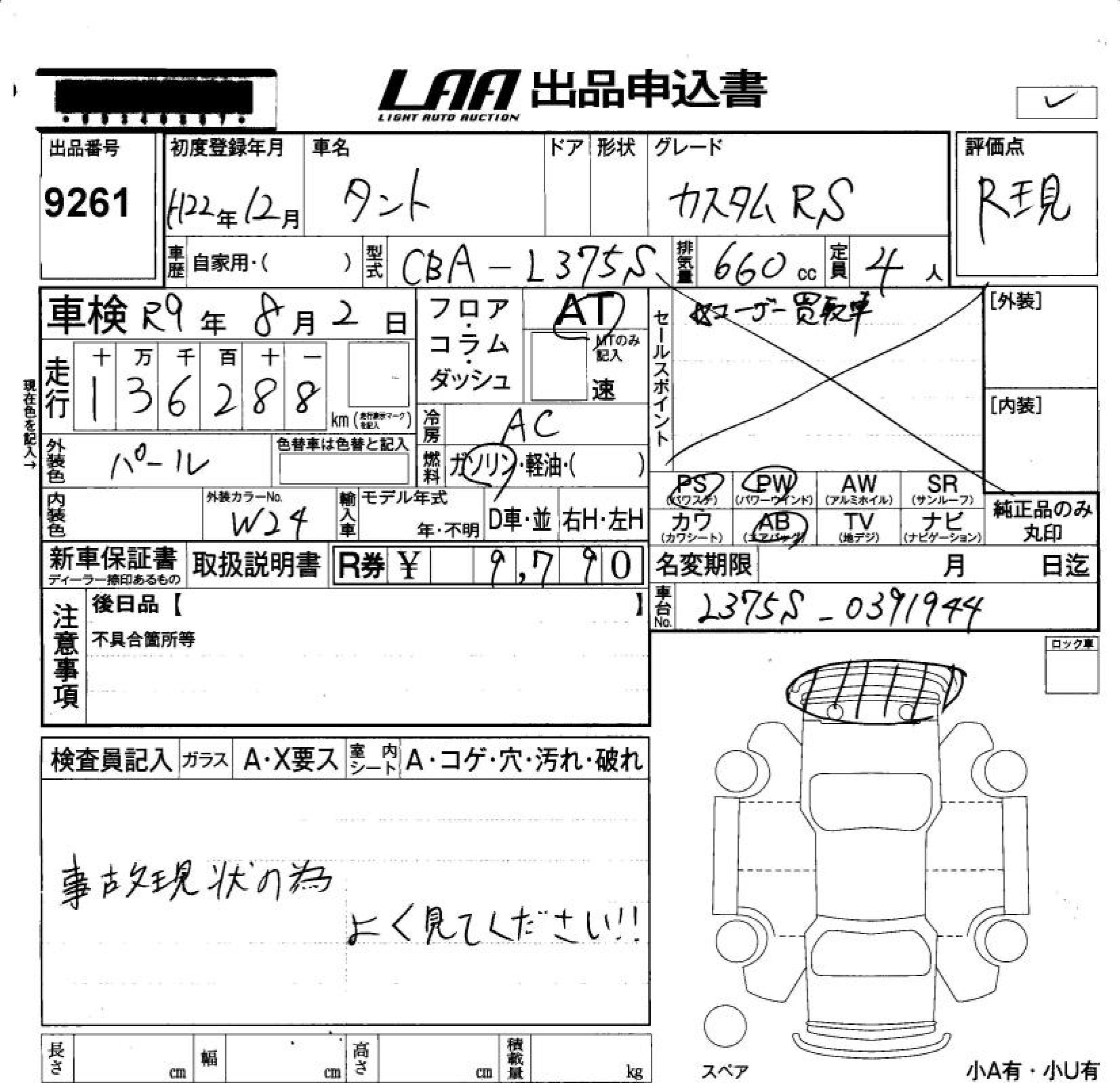 Daihatsu Tanto, 2010 года - Лот№9261 ★R