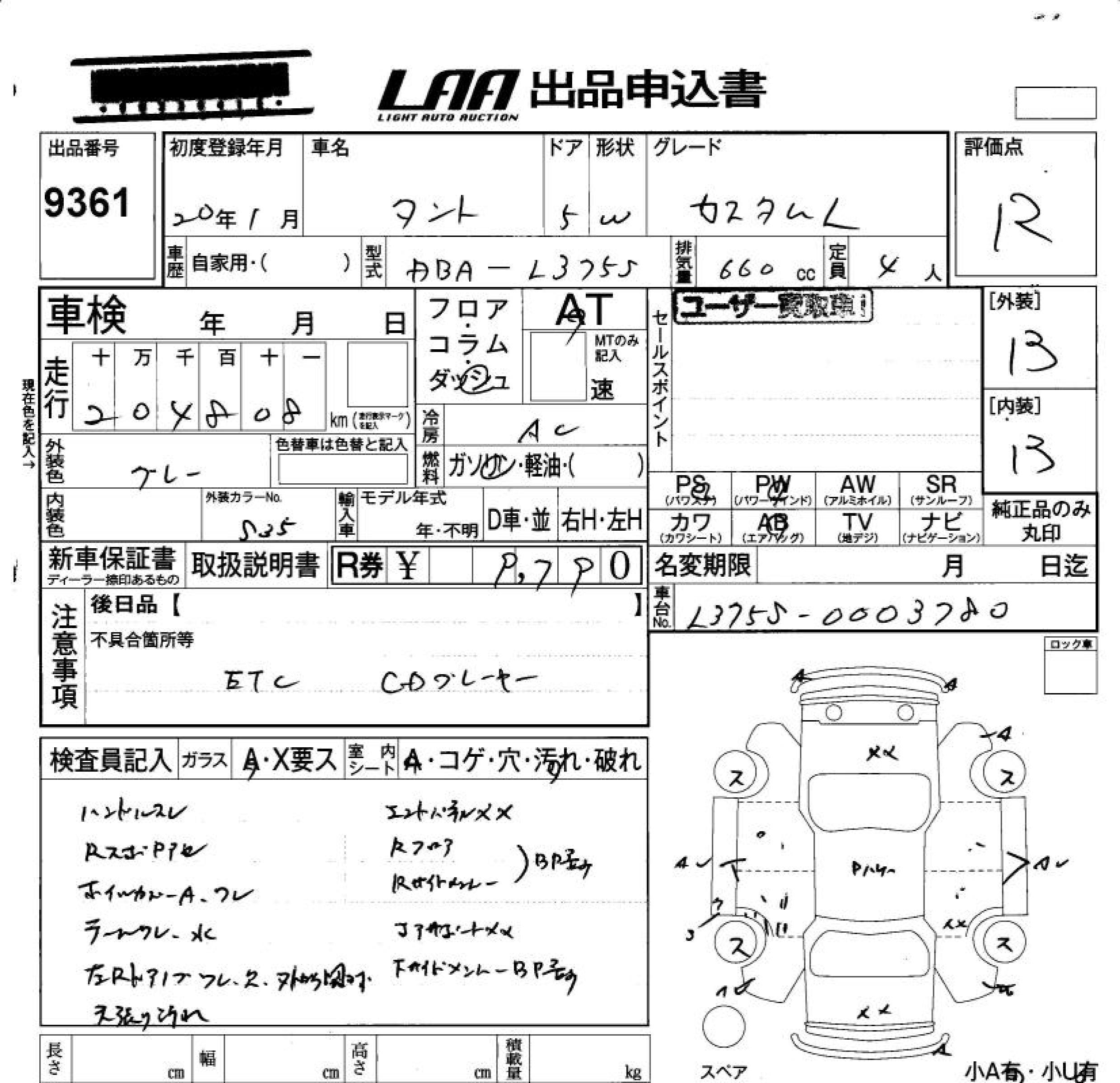 Daihatsu Tanto, 2008 года - Лот№9361 ★R