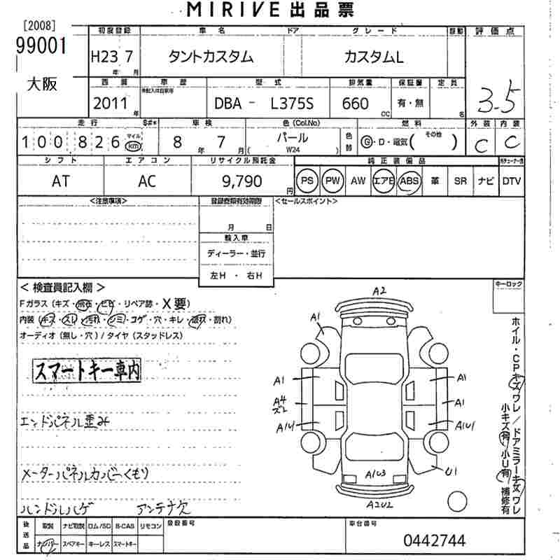 Daihatsu Tanto, 2011 года - Лот№99001 ★3.5