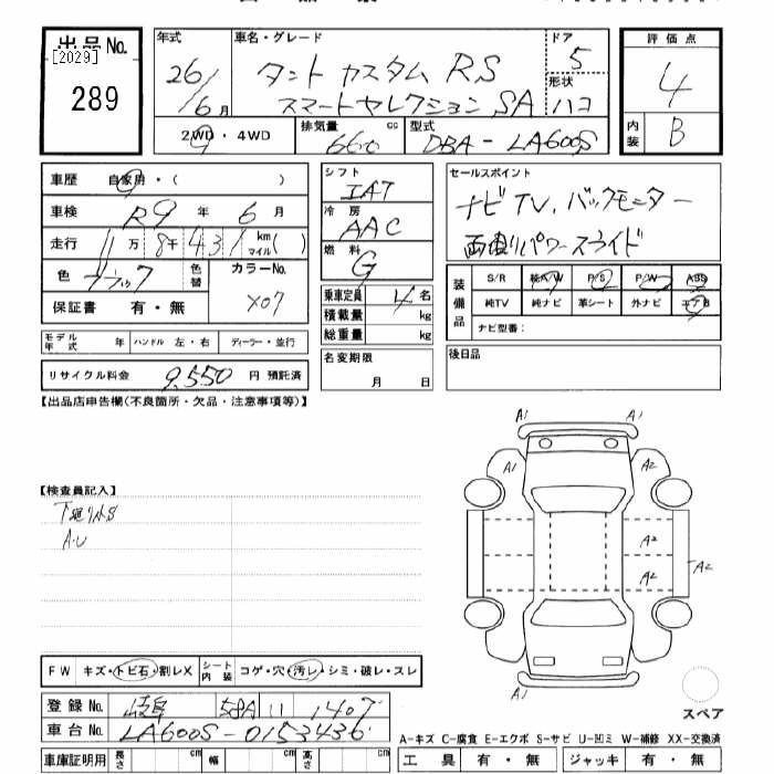Daihatsu Tanto, 2014 года - Лот№289 ★4
