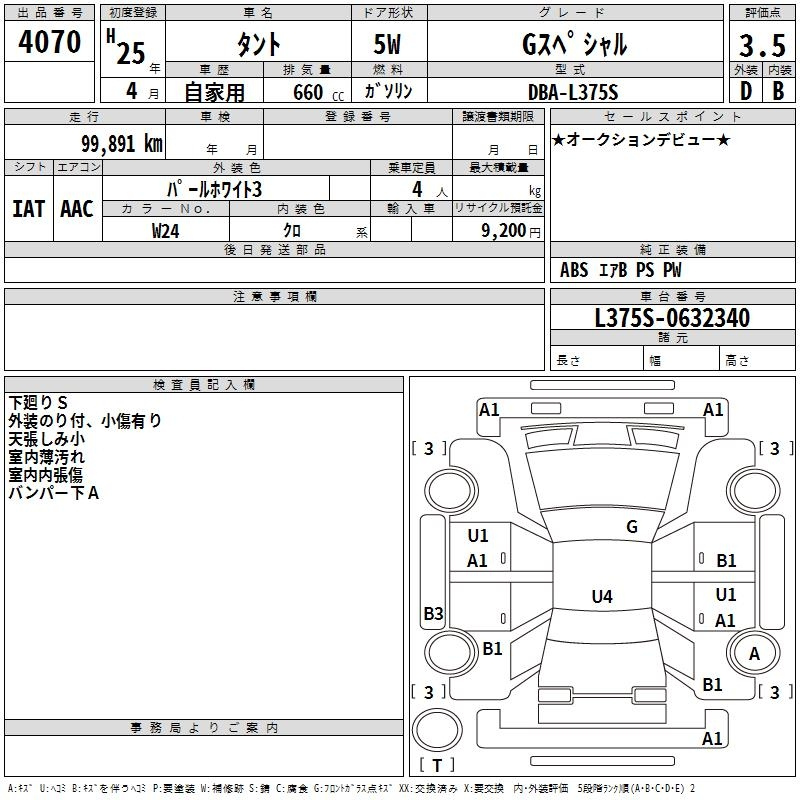Daihatsu Tanto, 2013 года - Лот№4070 ★3.5