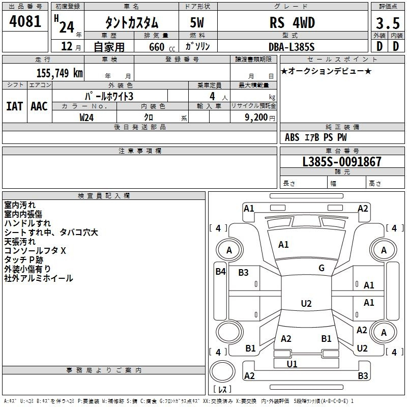Daihatsu Tanto, 2012 года - Лот№4081 ★3.5